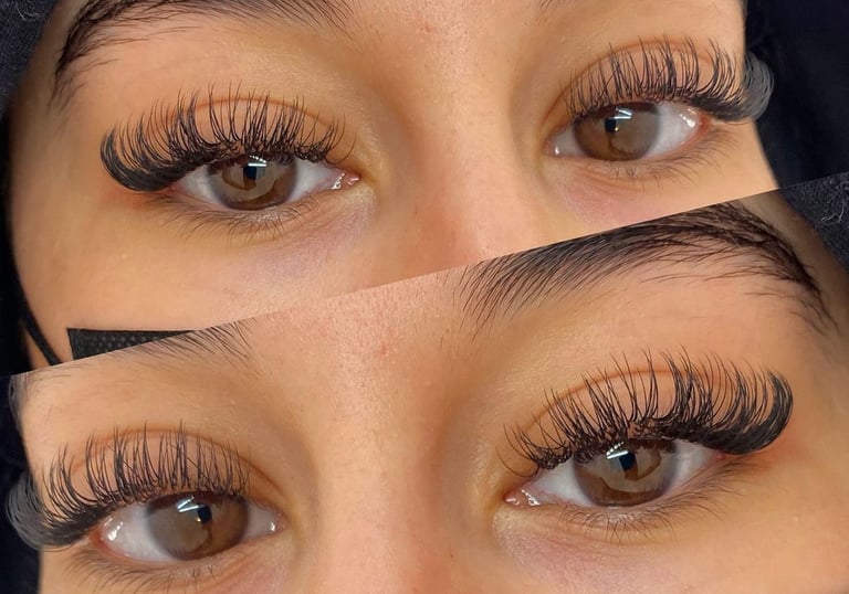 Volume lashes create a dramatic, fluffy effect with multiple lightweight extensions.